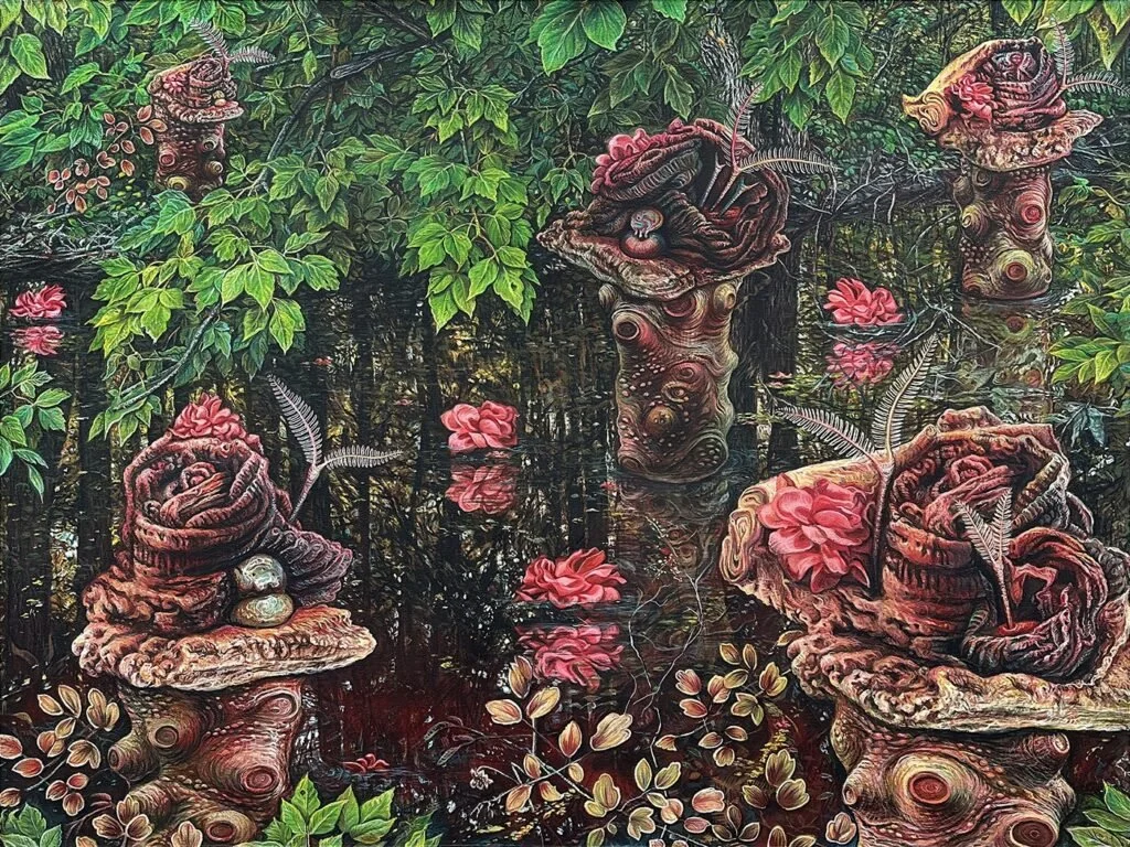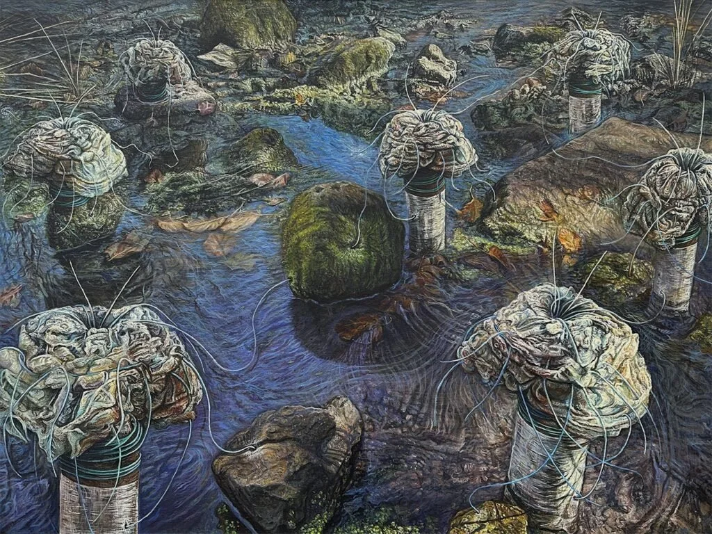 Something . . .abstract? surreal? real? . . . this way comes. Eco-future: be aware, beware, be wary. Hope to continue to be. So lush, productive, layered—so much to see and feel …