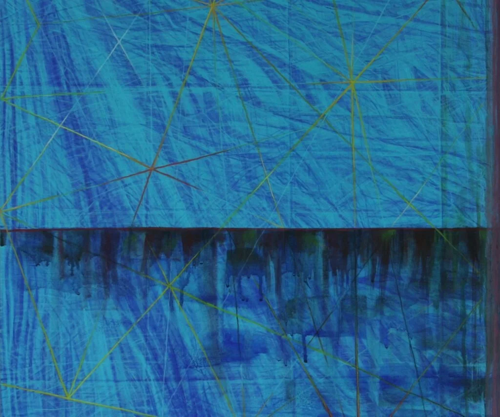 Acrylic on canvas, diptych, (3″ space between canvases), 36″x75″x1.5″, 2021