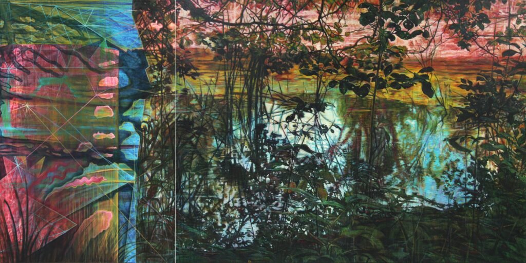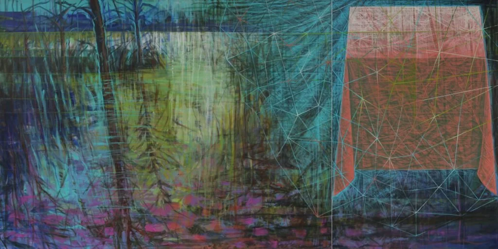 Acrylic on canvas, diptych, 36″x72″x1.5″, 2021