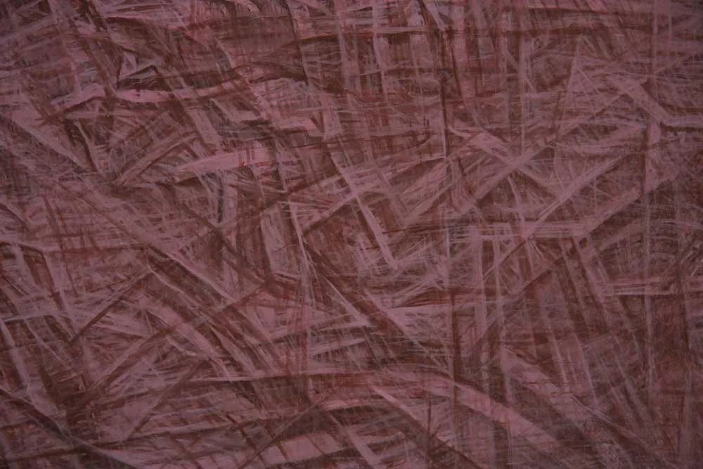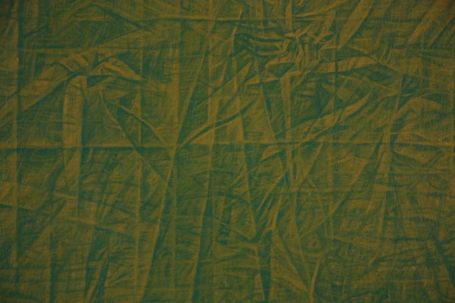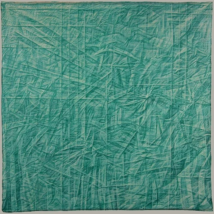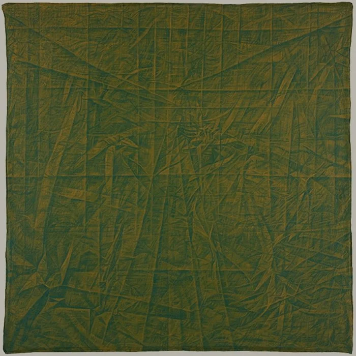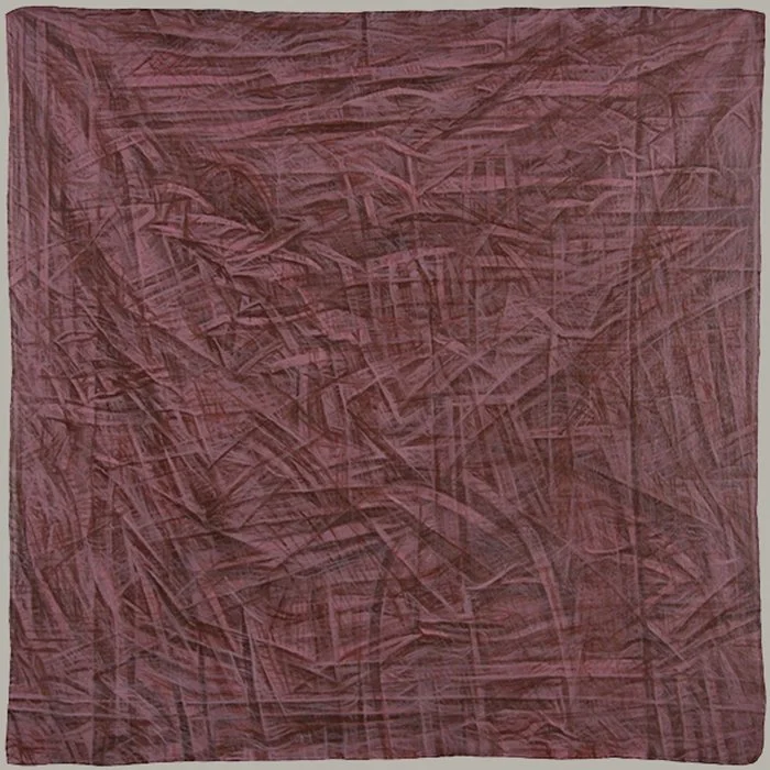 Veiling Desire 1-10, Veil/Frame/Void, and Relativity Veil 1, 2, & 3 challenge and play with expectations of what painting does. The product lies on the crease of representation and abstraction, nature and culture, and painting and object. It conceptualizes and dissolves boundaries between self/other, physical/metaphysical, and certainty/doubt, infinitely folding, refolding, and unfolding a fabric of interchangeability, a skin revealing another skin.