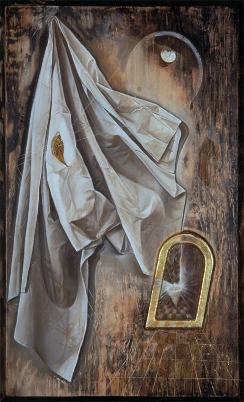 My drapery paintings on carved wood invoke and reinvent European canonical painting. A drapery may stand in for the body, free of specific gender connotations while still creating a human presence. The often-carved surfaces in the painting construction, along with the illusionistically painted drapery images, blend painting and sculpture, object and illusion, allowing the referents to resonate on multiple levels. I also see my paintings as texts (and often include text) offering layers of meaning to those viewers who take the time to engage them.